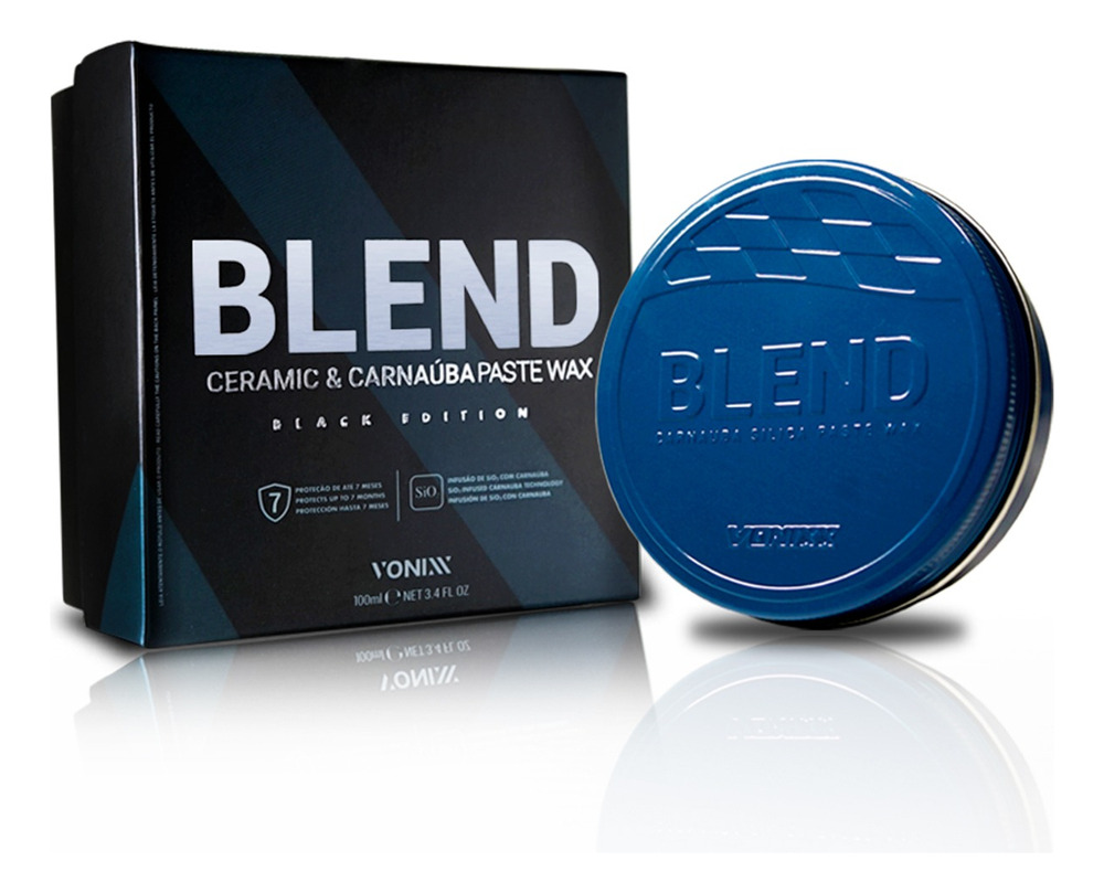 BLEND CERAMIC & CARNAÚBA PASTE WAX – BLACK EDITION es una cera híbrida especialmente desarrollada para automóviles de colores oscuros, especialmente negros. Compuesto por SiO2 y la más pura carnauba tipo 1, protege la superficie del vehículo hasta siete meses. El producto promueve la resistencia cerámica, el cálido brillo de carnauba y la repelencia al agua.