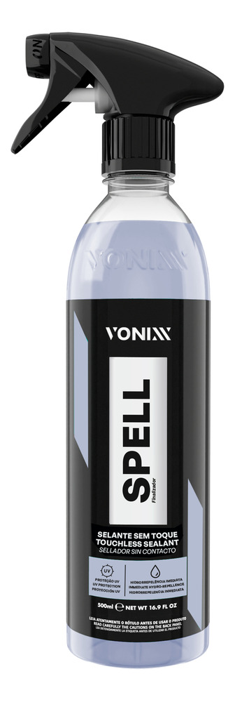 Spell es un sellador a base de sílice sin contacto que actúa inmediatamente cuando se aplica. Favorece la repelencia inmediata al agua, creando una película de brillo y protección UVA y UVB sobre pintura plástica, cristales y ruedas.