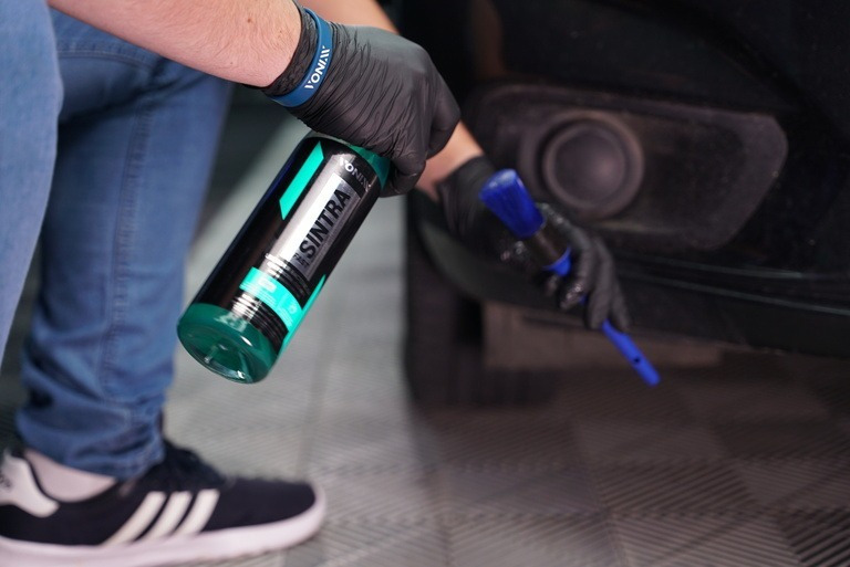 Sintra Fast es un multilimpiador universal, bactericida y germicida con pH equilibrado, indicado para la limpieza de paneles, laterales y esquinas de puertas, encimeras de cuero, alfombras y tapizados. Promueve un alto poder para eliminar manchas de grasa y suciedad diversa, además de eliminar microorganismos causantes de enfermedades en el interior del vehículo. Sintra Fast reduce los malos olores en el interior del vehículo, volviéndolo más saludable y libre de impurezas.