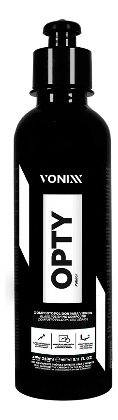 OPTY es un compuesto pulidor de alto rendimiento formulado exclusivamente para pulir vidrio. El producto actúa eficazmente en la eliminación de rayones, rayones superficiales, rayones de caña y marcas de agua del vidrio en general.
